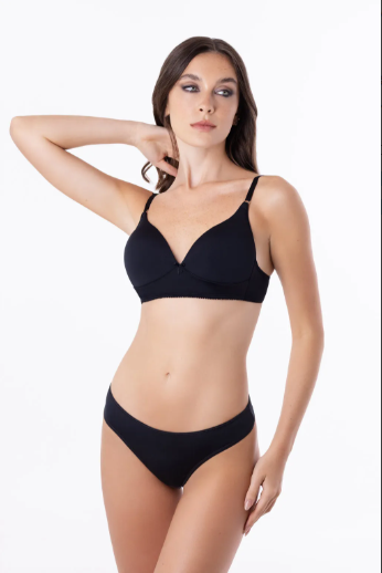 Conjunto: Corpi taza soft triangulo de microfibra, breteles y contorne regulable + colaless a juego. Talles y colores a elección