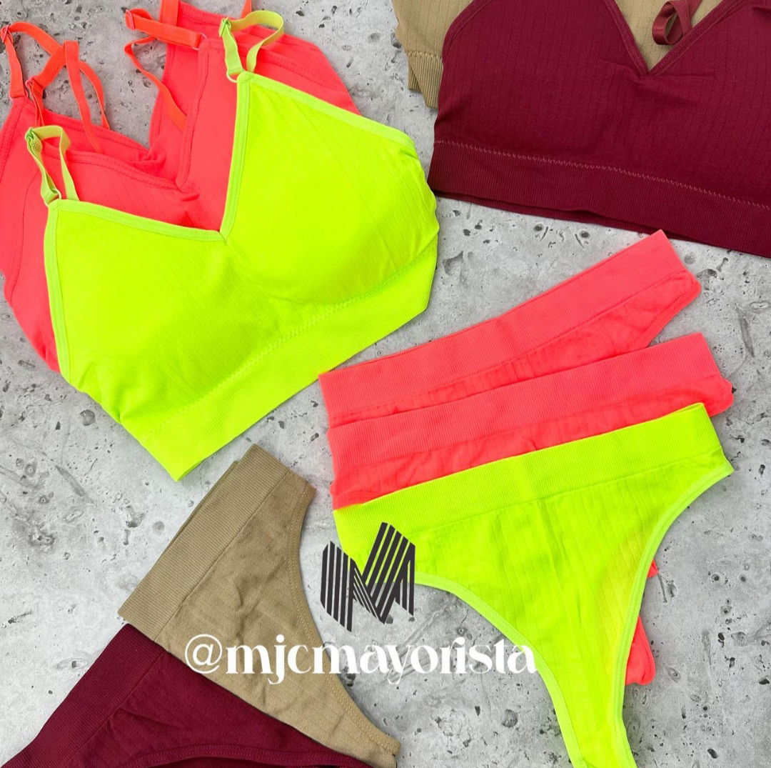 Set importado tipo seamless de Morley ancho con breteles de elástico regulables / Colores del pack en foto