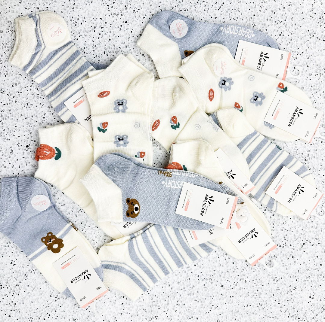Soquetes marca Amanecer - diseños y colores en tonos pastel/tierra