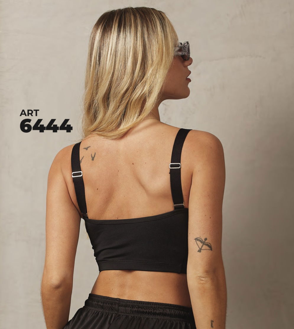 Top deportivo de microfibra con aro taza Soft con Elastico ancho. Talles y Colores a elección