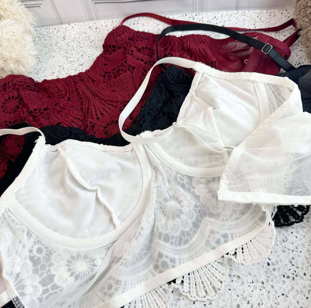 Top de Guipiur importado con aro sin relleno, forrado con lycra. Breteles regulables.