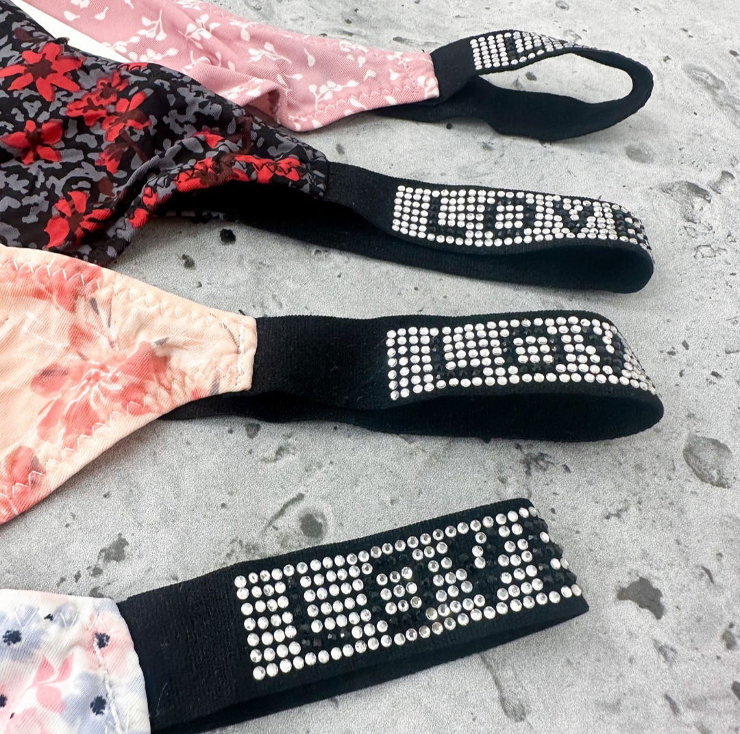 Less importadas lĂnea econĂłmica con tiras STRAP de brillos. 2 tamaños estampas surtidas ver foto