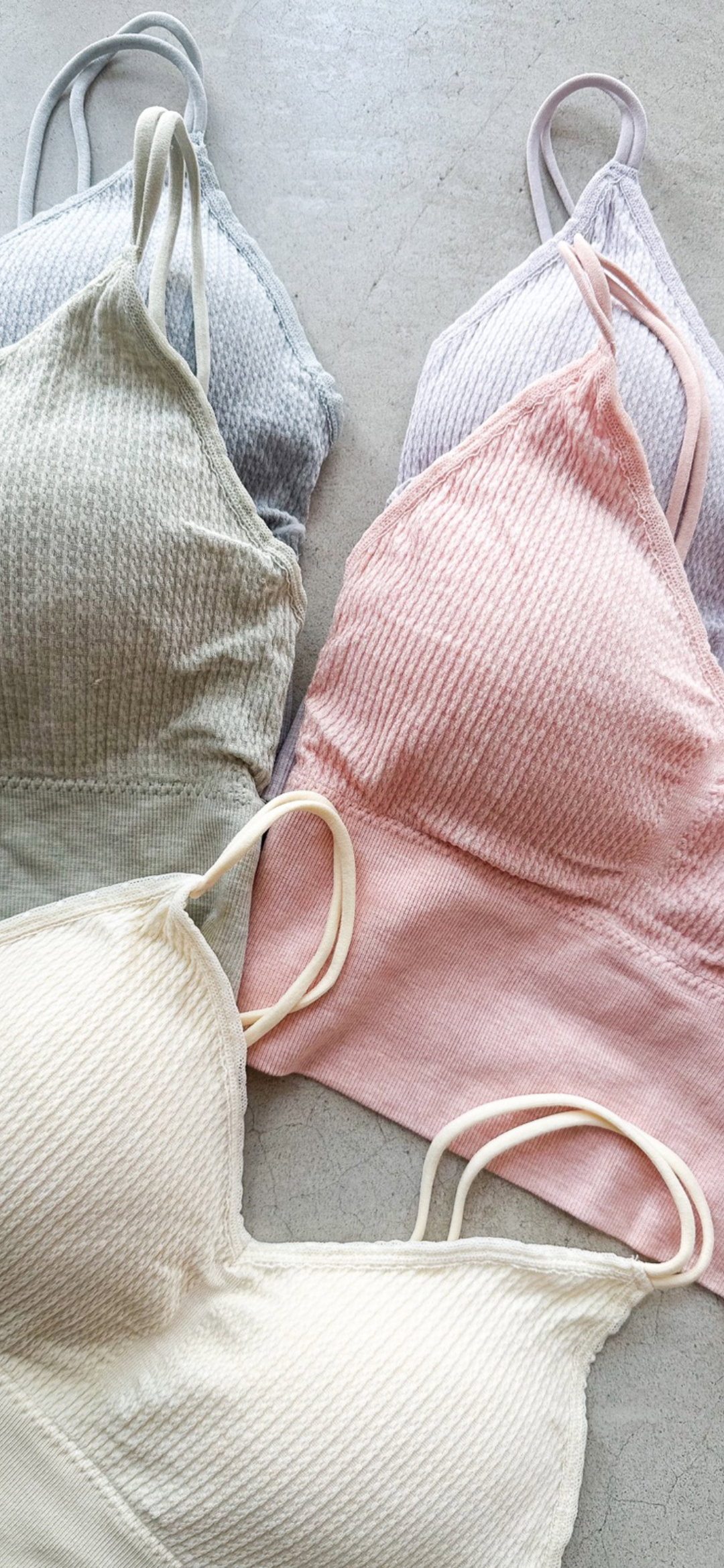 Top de morley resistente con tasas desmontables. Colores del pack: tonos pastel segun fotos