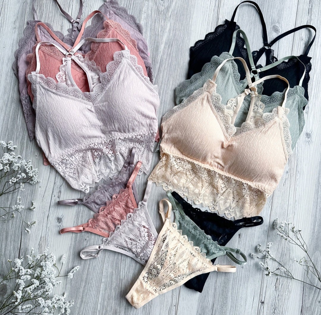 Set importado de Bralette, tipo top con detalles en la espalda + less regulable.En el pack: 2 tamaños y colores surtidos (ver en fotos)