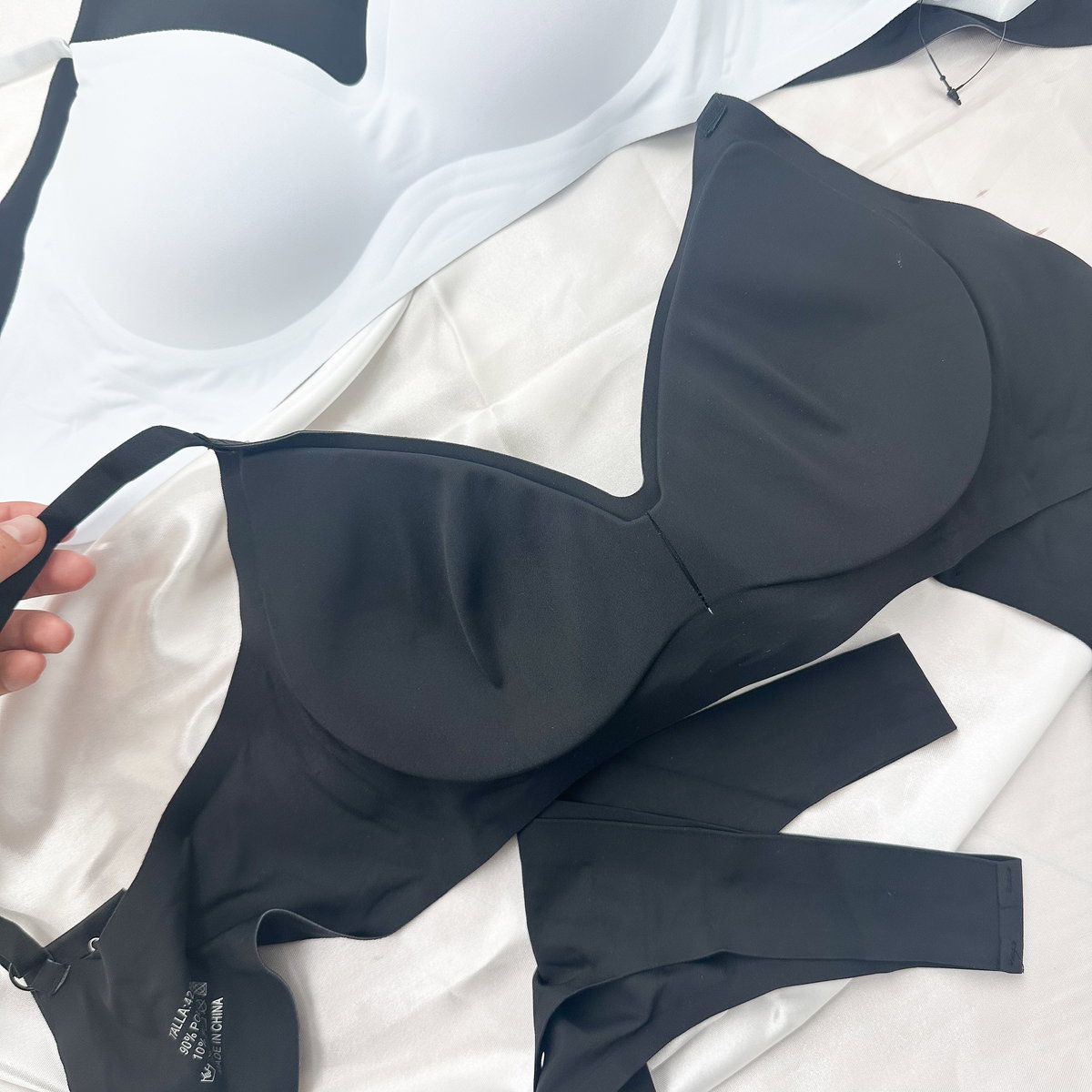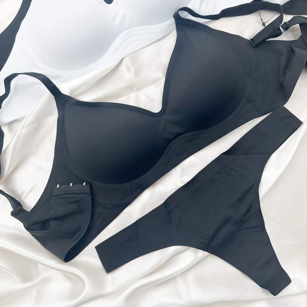 Conjunto: corpi seamless con contorno y breteles regulables modelo clásico + less sin costuras.