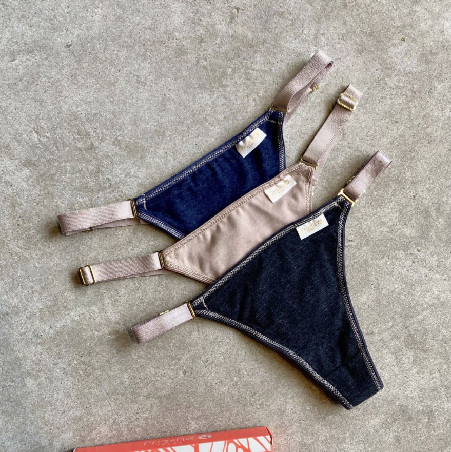 Tango de algodón y lycra linea Denim con elastico regulable . Talle: UNICO . Colores surtidos: Negro - Natural - Azul