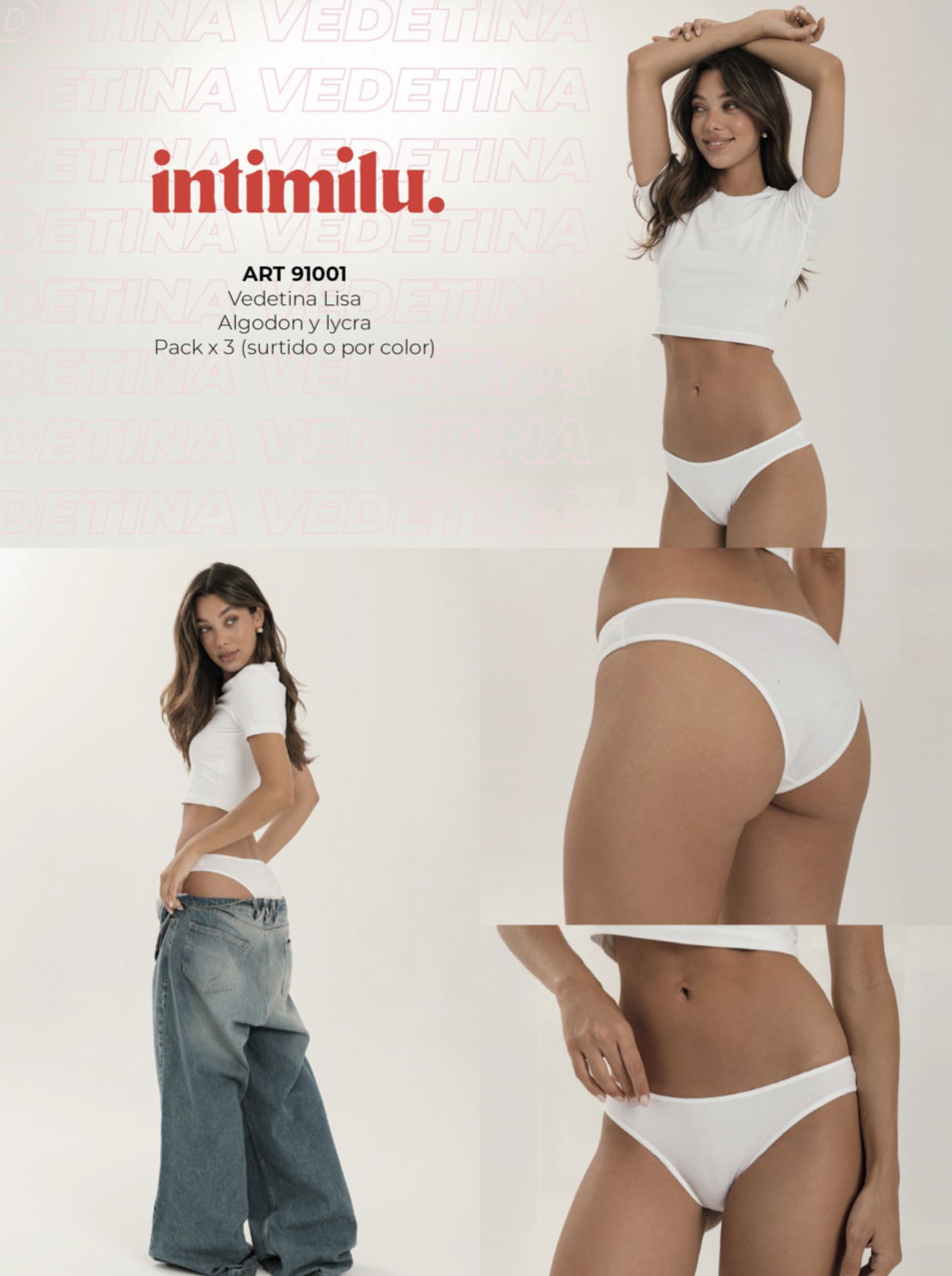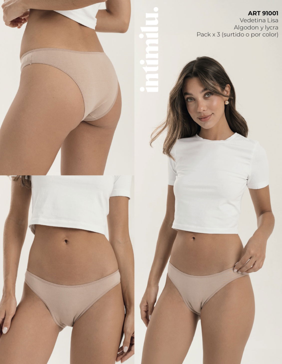 Vedettina lisa de algodĂłn y lycra . Colores en el pack: negro - blanco - natural . Incluye caja exhibidora