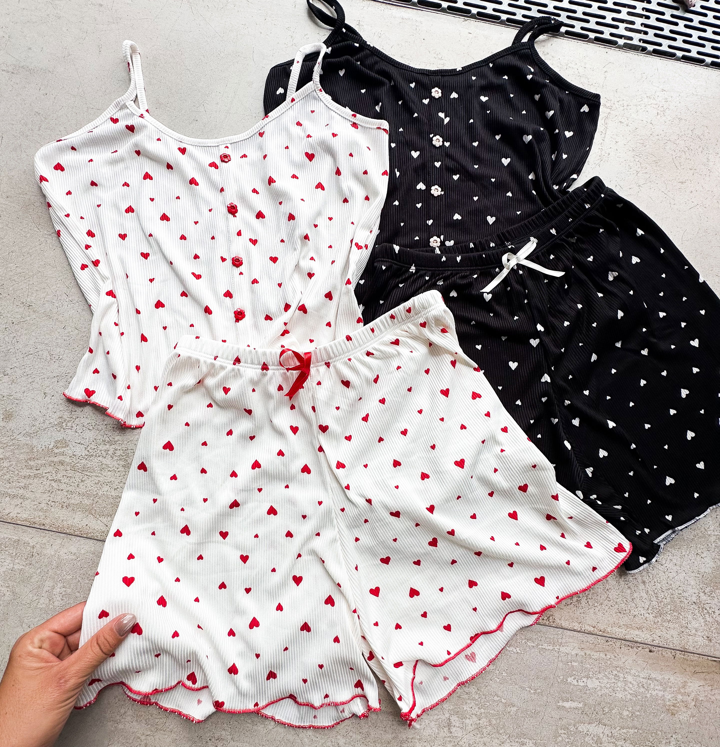 Pijama de morley elastizado estampado con botnes al frente. Musculosa y short